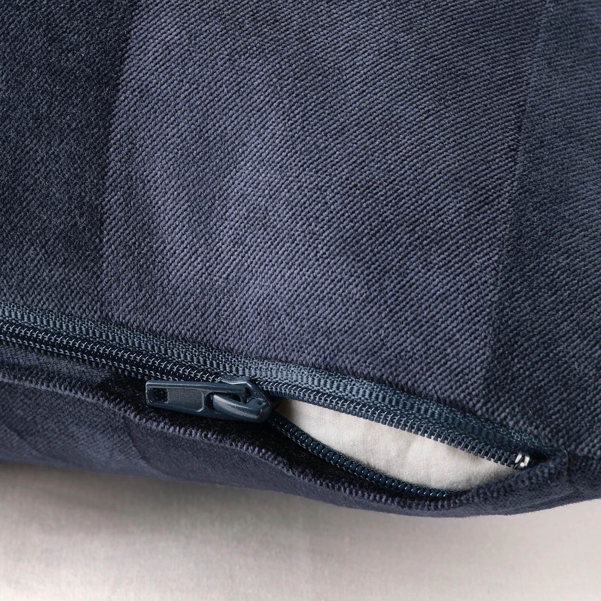با محصولی پرطرفدار از برند ایکیا همراه شما هستیم. یک کاور کوسن با جنس79% پنبه، 21% ریون نرم و عالی و مقامت بالا که در دکوراسیون مینیمال و شیک شما بسیار عالی خواهد شد. کاور کوسن ایکیا IKEA PIPRANKA- سرمه ای تیره متناسب با کوسن های داخلی 50×50 سانتی متر با زیپ پنهان که باعث می شود پوشش و استفاده آن آسان باشد. این کاور با بافت های مختلف یک الگوی راه راه پهن ایجاد می کند که در خانه جلب توجه کرده و زیبا دیده می شود.