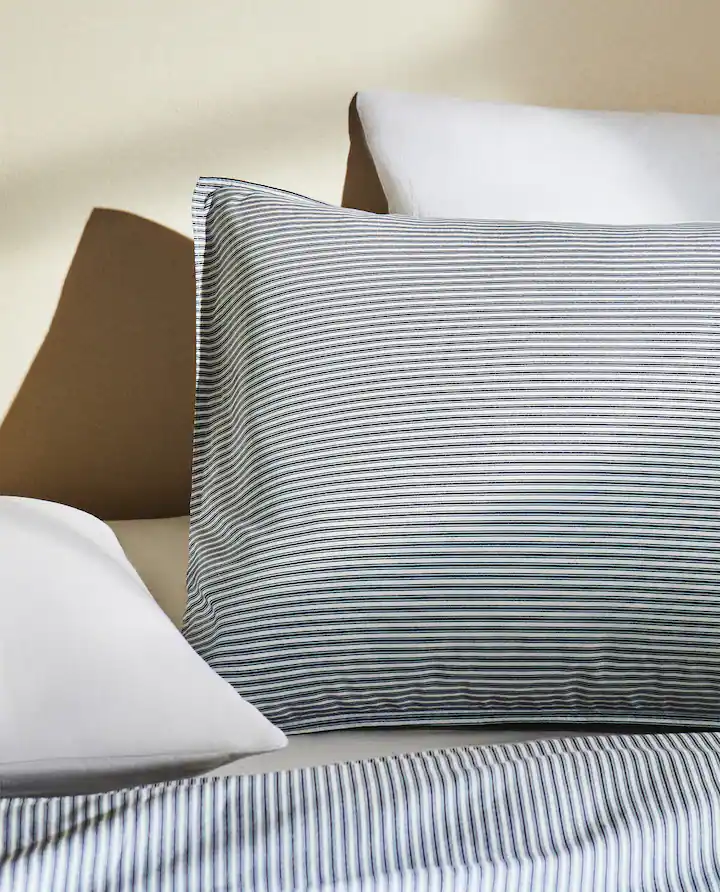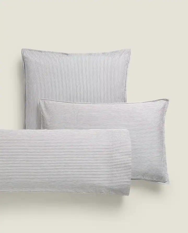 ست دو تایی روبالشی راه راه نخی برند زارا، انتخابی عالی برای افزودن جلوهای خاص و مدرن به اتاق خواب شما هستند. این نوع روبالشیها معمولاً از پارچههای نخی ساخته میشوند که به دلیل تنفسپذیری و نرمیشان محبوبیت زیادی دارند. نوارهای کنتراست میتوانند به صورت افقی، عمودی یا حتی الگوهای هندسی باشند و به روبالشیها شخصیت و عمق بیشتری میبخشند.