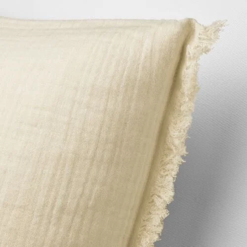 هنگامی که می خواهید حال و هوای آرامی داشته باشید، کاور کوسن ایکیا کرم VALLKRASSING را به مبل یا تخت خود اضافه کنید. خراطین پنبه ای فوق العاده نرم جلوه ای چروک ایجاد می کند که کاملاً با لبه های خام مطابقت دارد. زیپ آن باعث می شود که روکش به راحتی در ماشین لباسشویی برداشته شود.